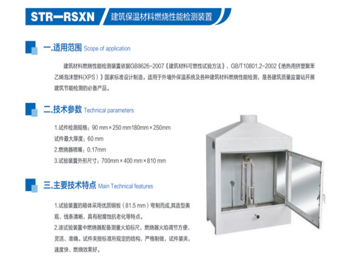STR-RSXN建筑保溫材料燃燒性能檢測裝置適用于外墻保溫系統